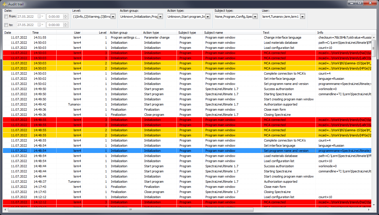 These functions will be useful for organizations for which the increased requirements for data protection, quality assurance system and traceability of results (production of radiochemical pharmaceuticals, medical institutions, etc.) and GMP standards (Good Manufacturing Practice) are applied.