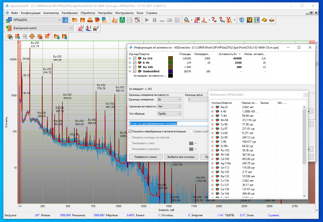 Программа SpectraLineGP (Gamma Precision) предназначена для проведения спектрометрических измерений и прецизионной обработки гамма-спектров от полупроводниковых и сцинтилляционных спектрометров.