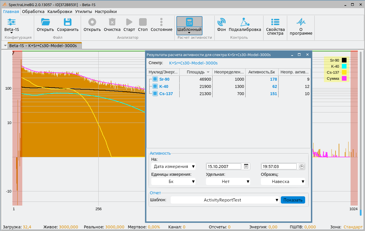 - расчет активности шаблонным методом;